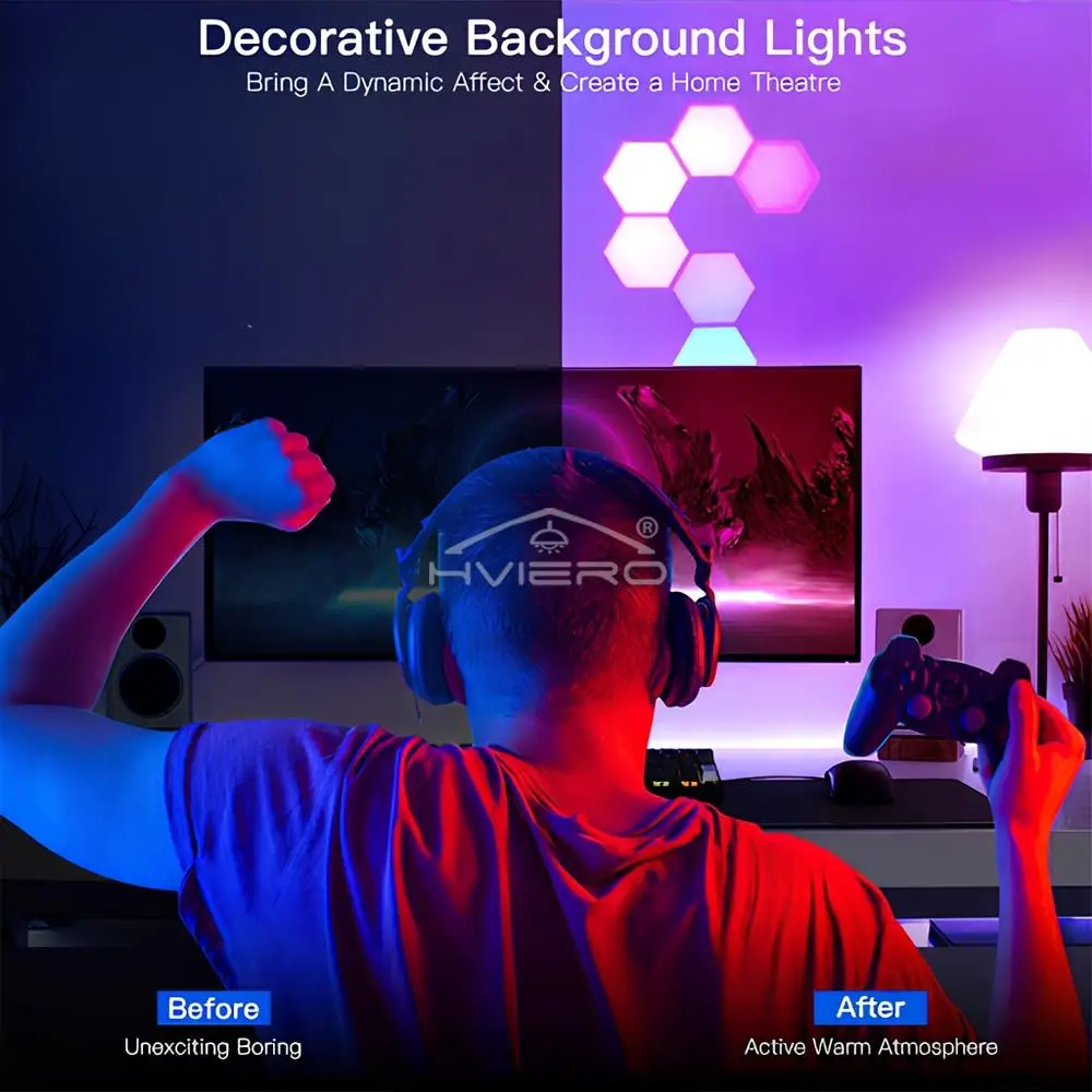 جهاز تحكم عن بعد LEDمصباحRGB سداسيةمصباح جداري داخلي متغير اللون بألوان مختلفة لتزيين خلفية استشعار اللمس