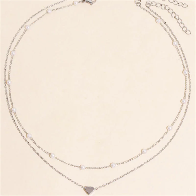 سلسلة بطبقة مزدوجة ، قلادة قلب للنساء